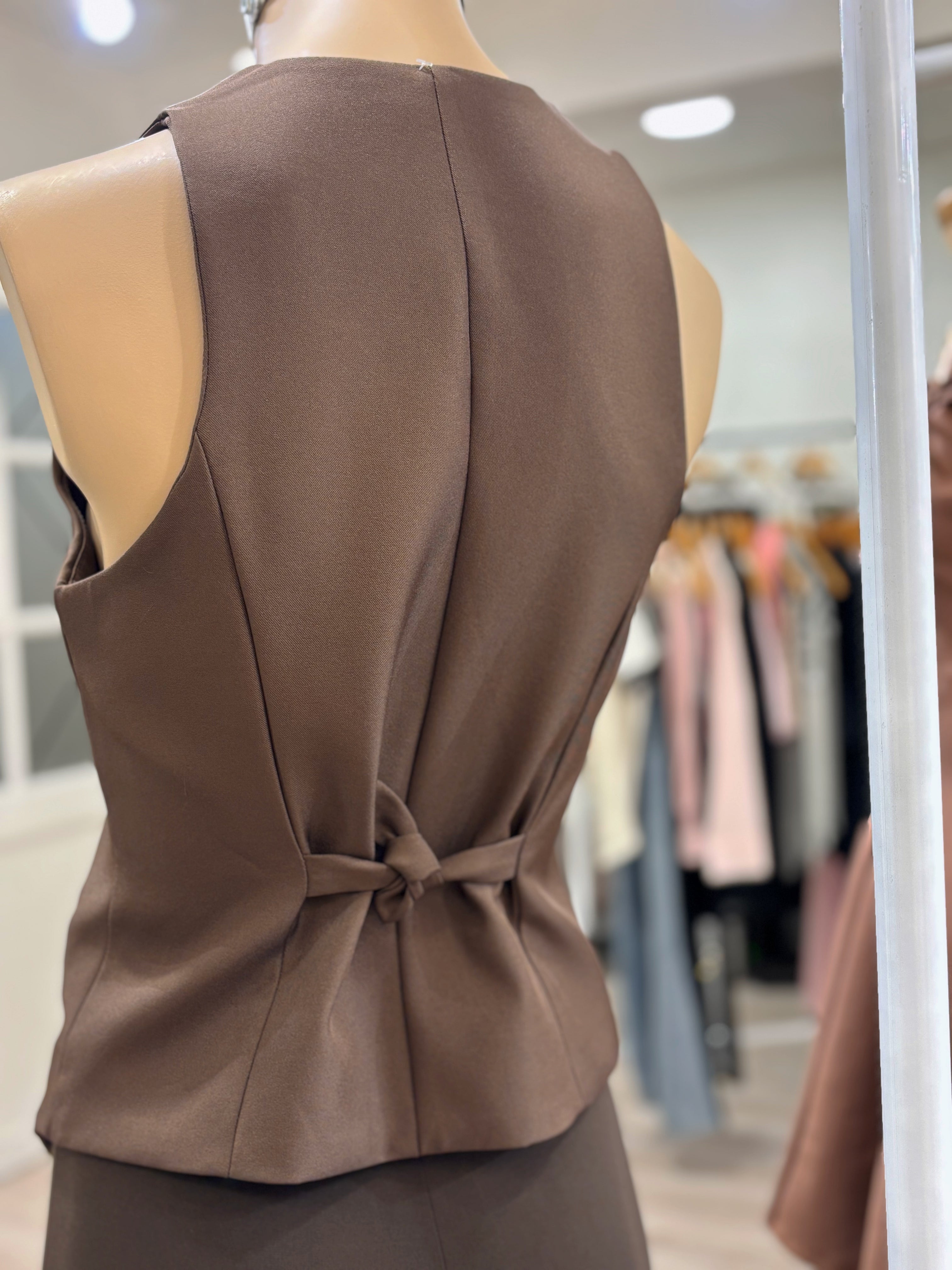 Gillette sastrera asimétrica en color marrón, un Must para esta temporada si quieres lucir semiformal pero fresquista a la vez. Para días calurosos y de oficina es ideal.
