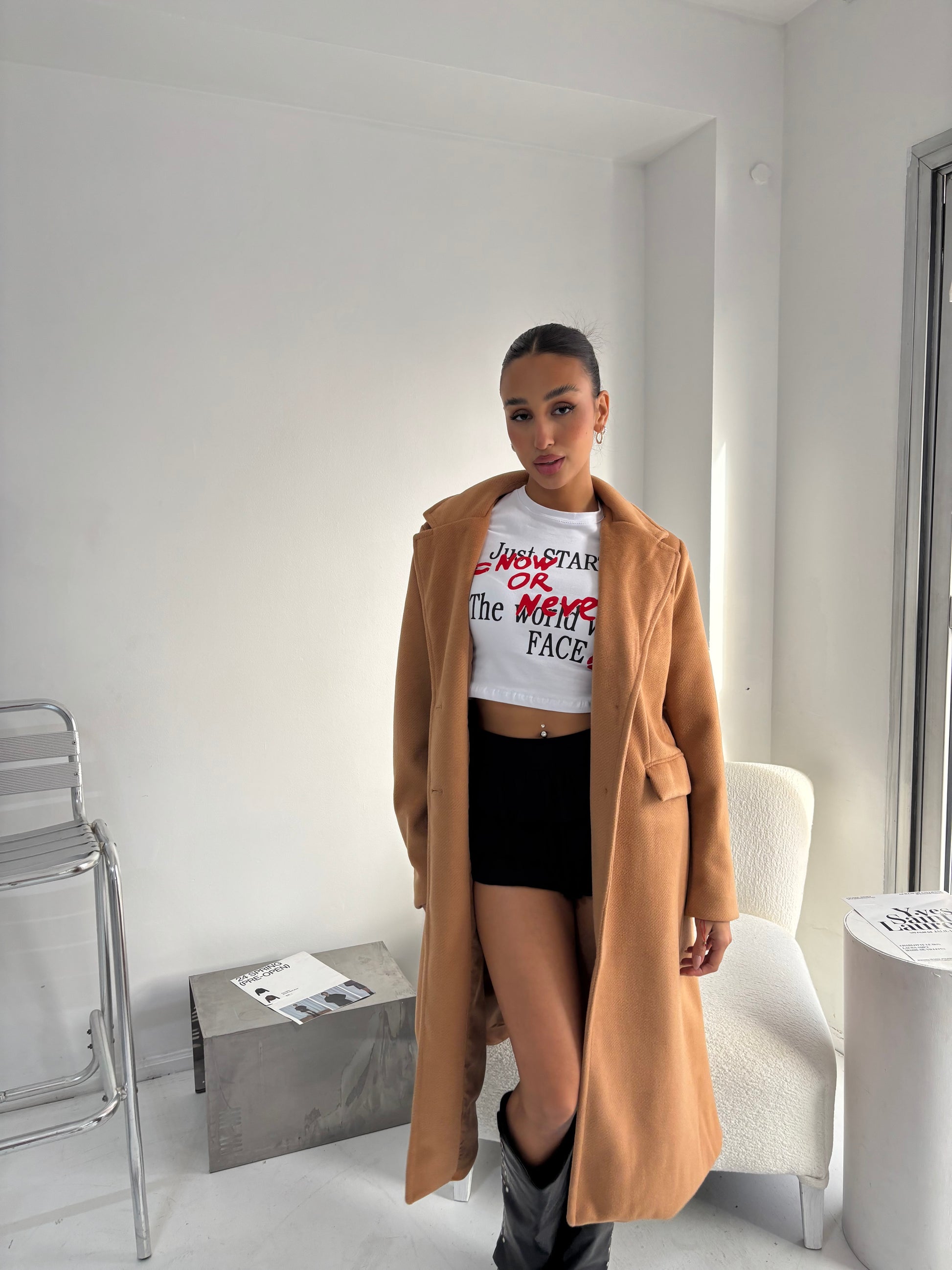 El abrigo camel es ese comodín que te salva toda la temporada: no pasa de moda, combina con casi todo y hace que cualquier outfit se vea más armado al instante.