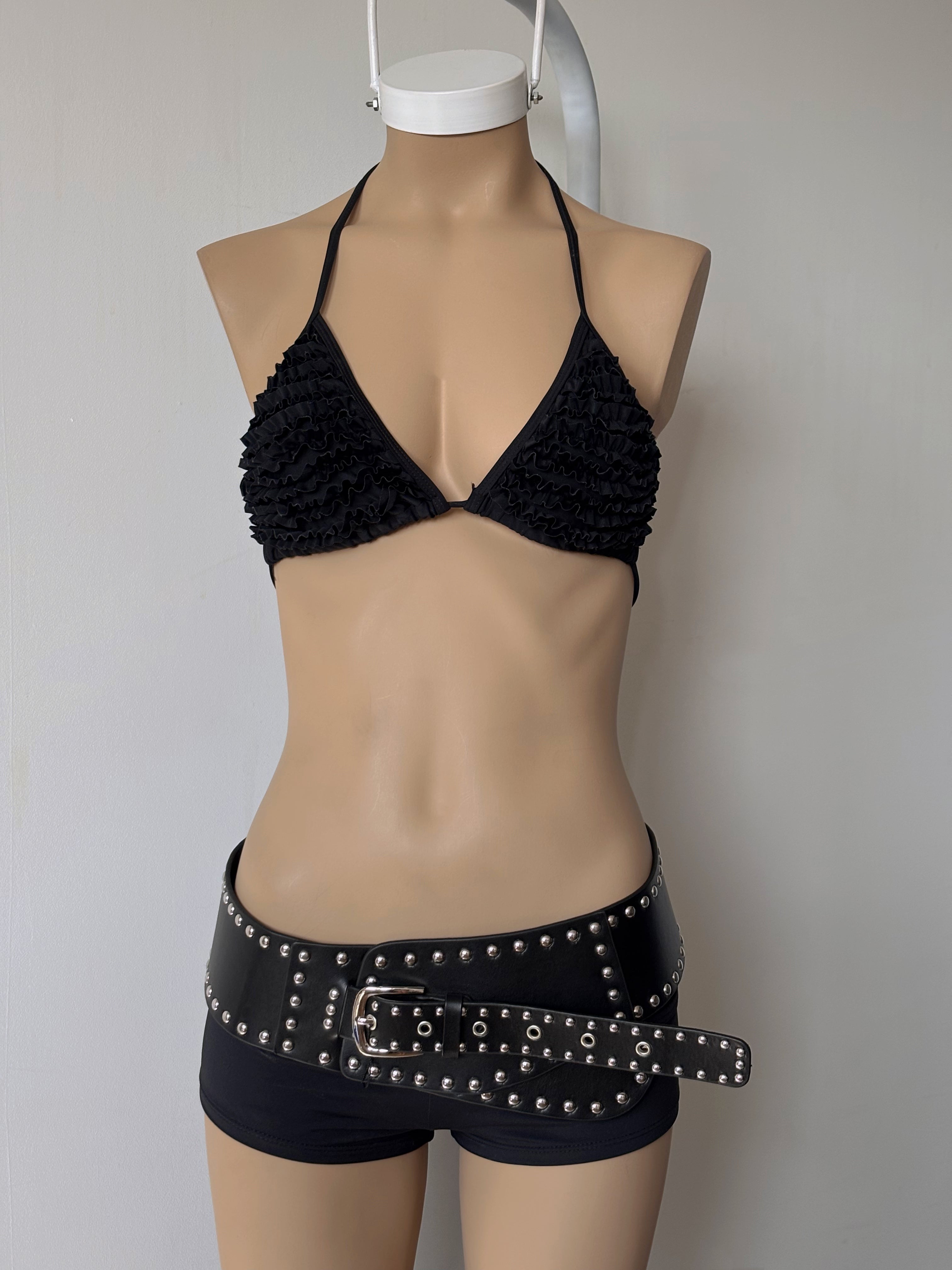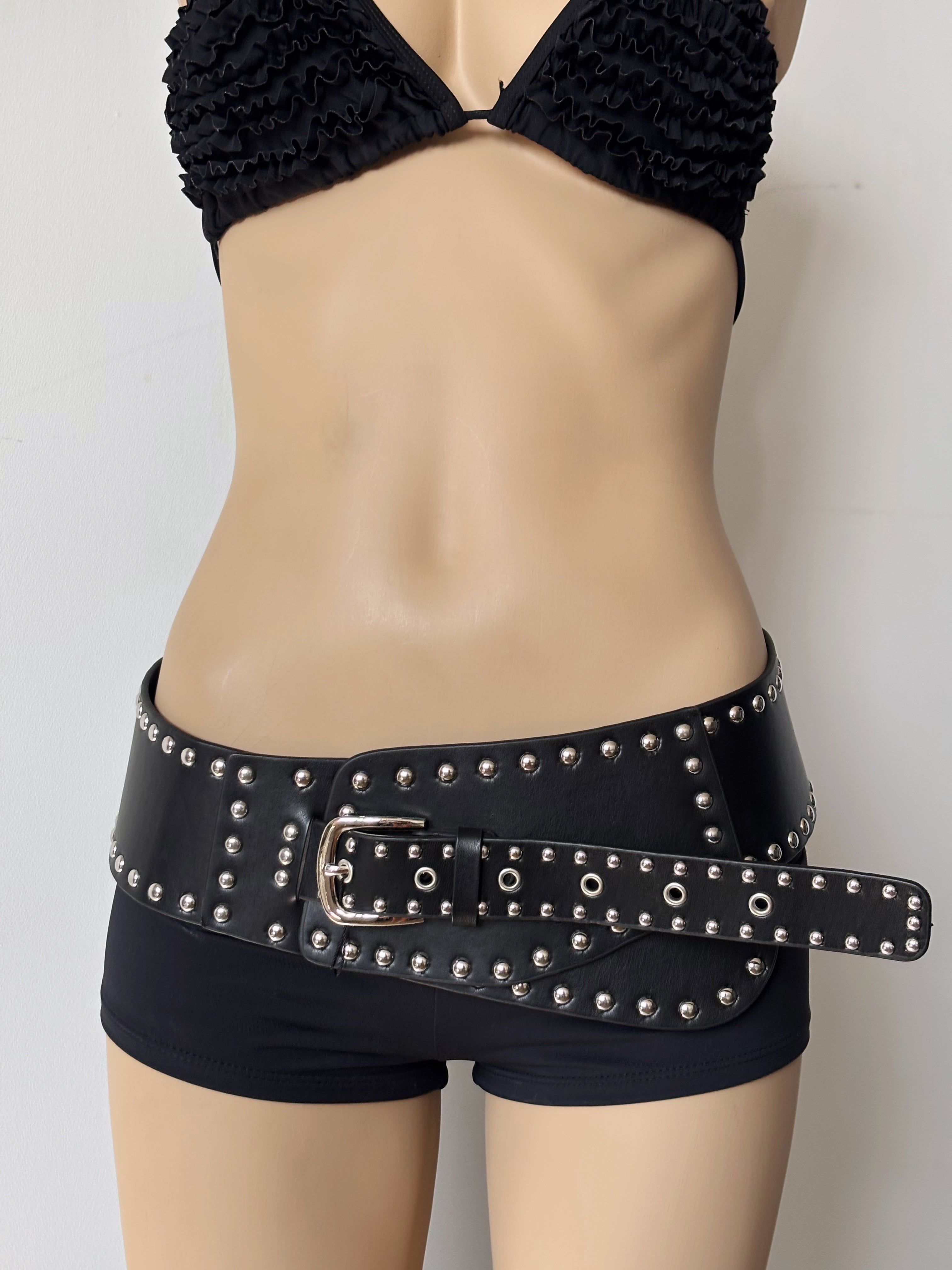 Cinturón fajero, con tachas plateadas ¡eleva todos tus looks! Cuenta con 3 ojetillos para distintas medidas.